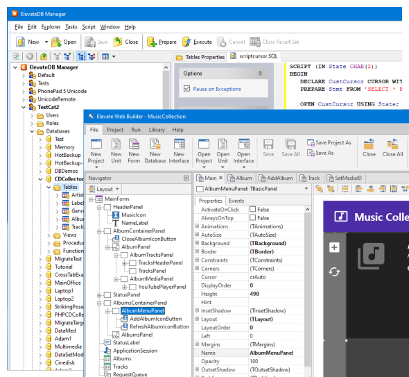 Some swear by ElevateDB and Elevate Web Builder. ElevateWebBuilder doesn’t talk to non-ElevateDB servers… ElevateDB and NexusDB doesn’t provide easy-to-use REST APIs without extensive coding. There’s RAD Server, SAP Build.